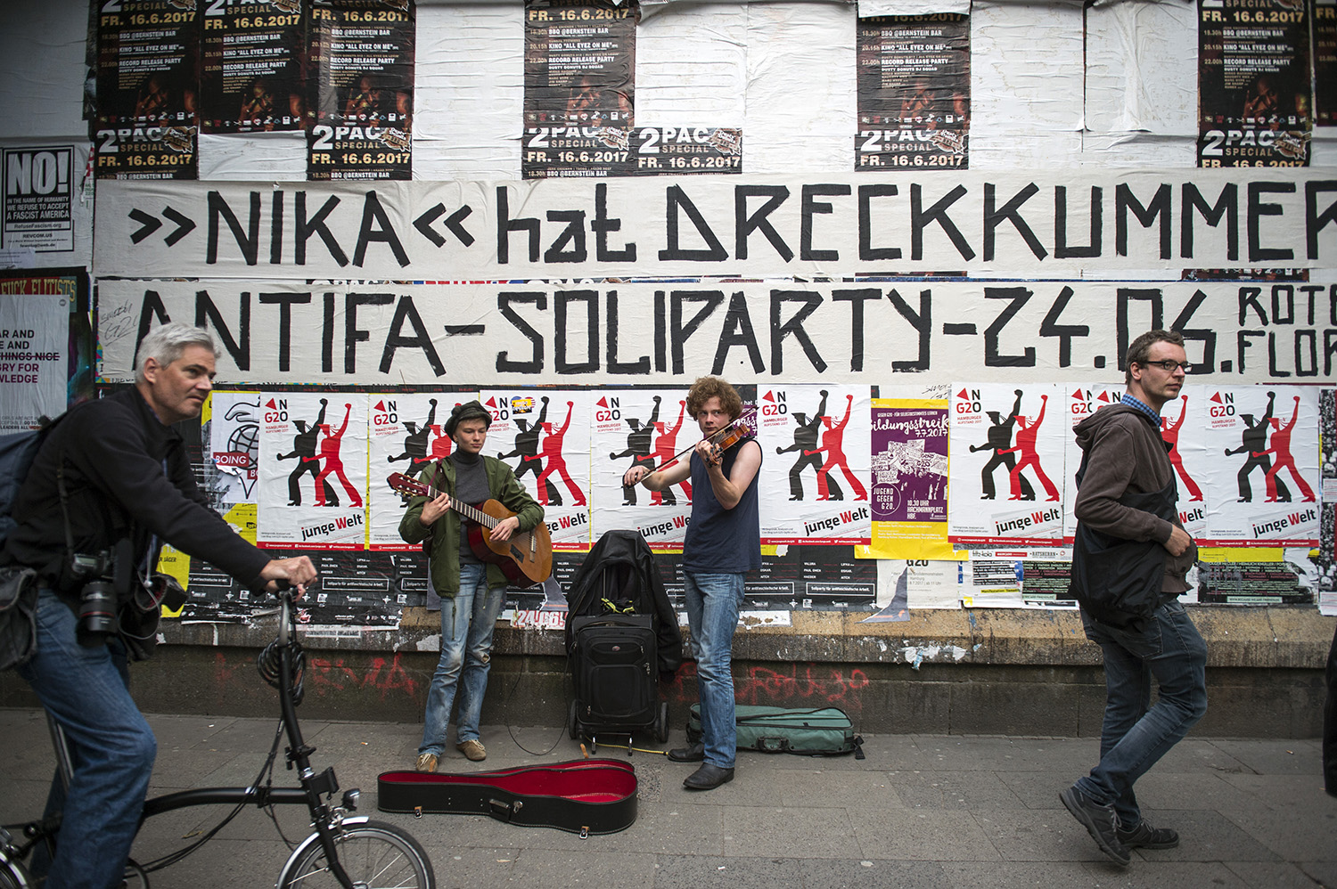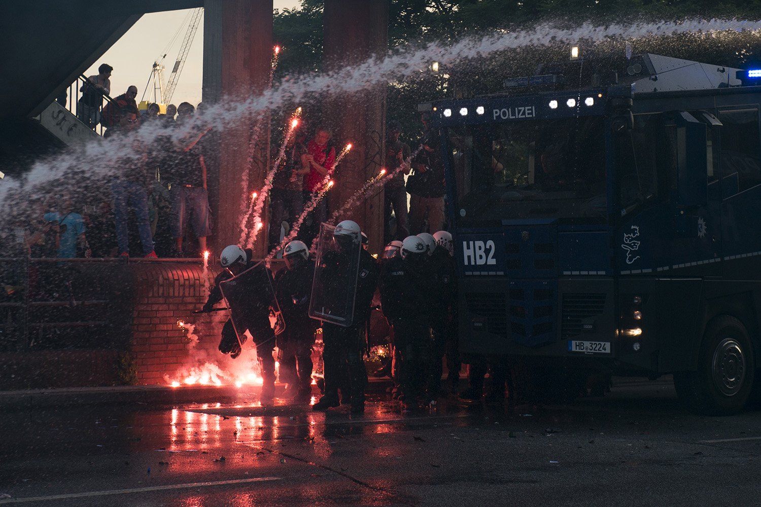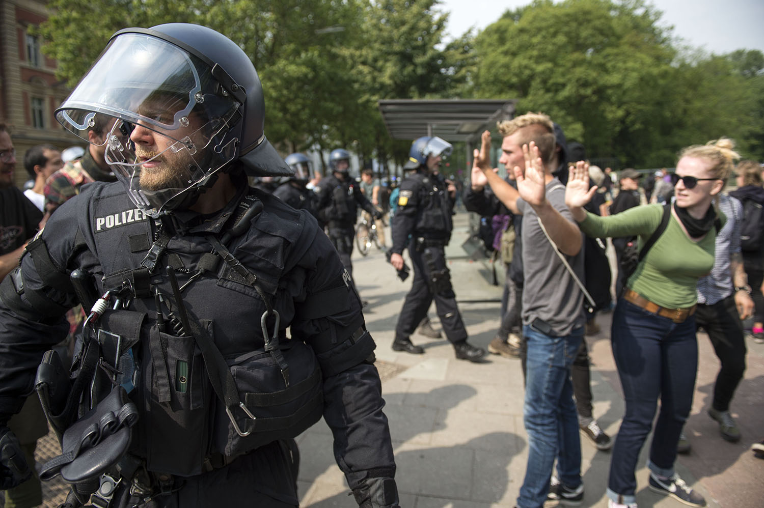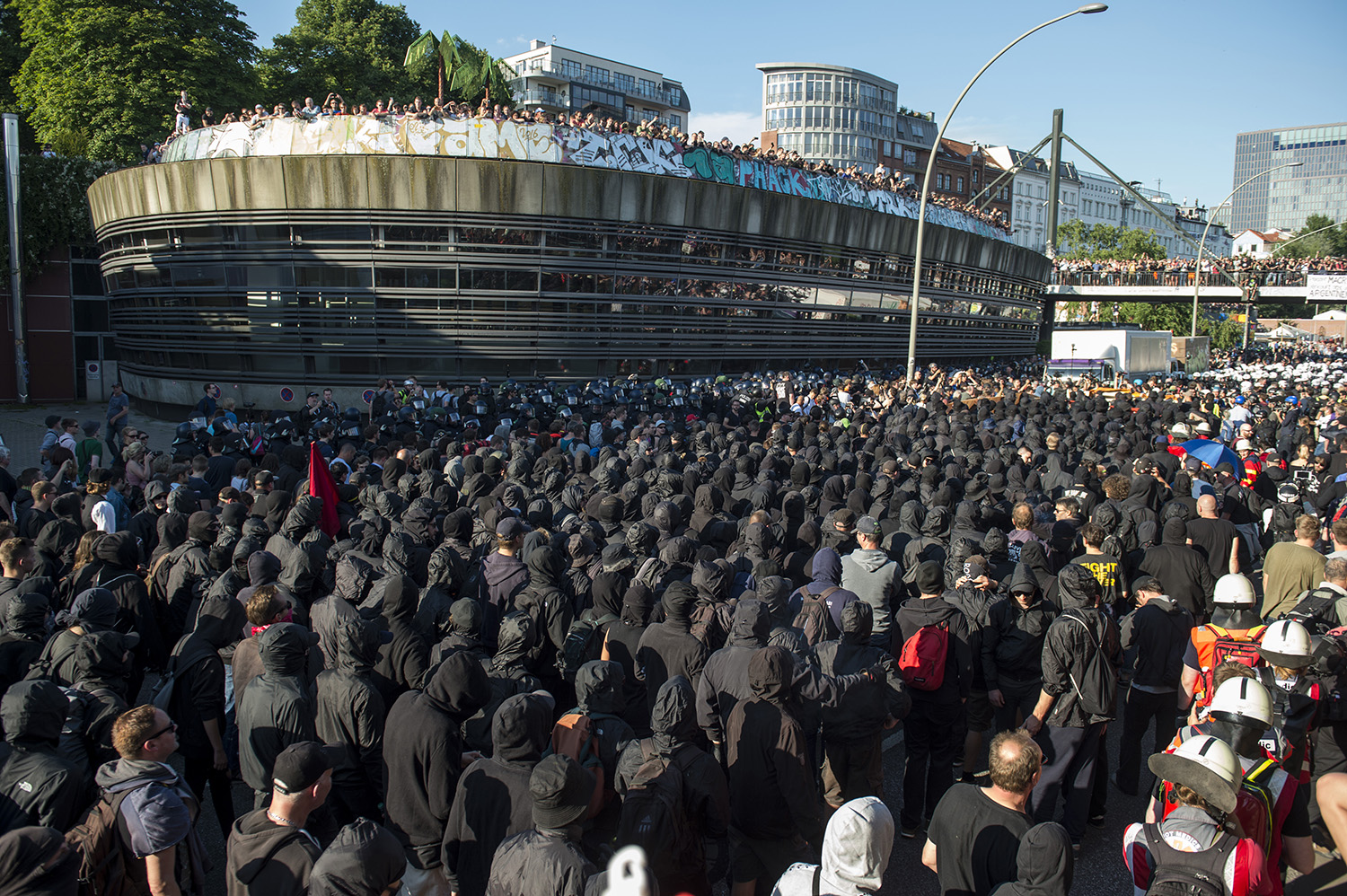 La reunión este año era en Hamburgo, en el popular barrio de Sant Pauli. Un claro paralelismo con Génova y su contracumbre en 2001 hacían presagiar lo peor en cuanto a la represión policial. Más de 20 000 policías alemanes fueron llamados a la cita. Cañones de agua, antidisturbios, helicópteros impidieron el normal desarrollo de la manifestación, que apenas pudo avanzar 200 metros antes de que fuera atacada por la policía. Se produjeron escenas de pánico y muchos heridos y afectados por el gas entre los manifestantes y los propios policías. Durante los días que ha durado la cumbre, el objetivo de entorpecer su funcionamiento por parte de la convocatoria antiglobalización fue un éxito.